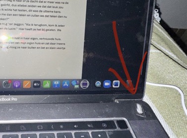 Vier dagen later, op zondag liep ik door de keuken van mijn eigen huis en daar zat ineens een duif binnen op mijn vensterbank. Toen ze me zag vloog ze naar buiten en liet en klein veertje achter. Een veertje dat nog altijd op mijn laptop plakt (en inmiddels is meeverhuisd naar een nieuwe laptop).